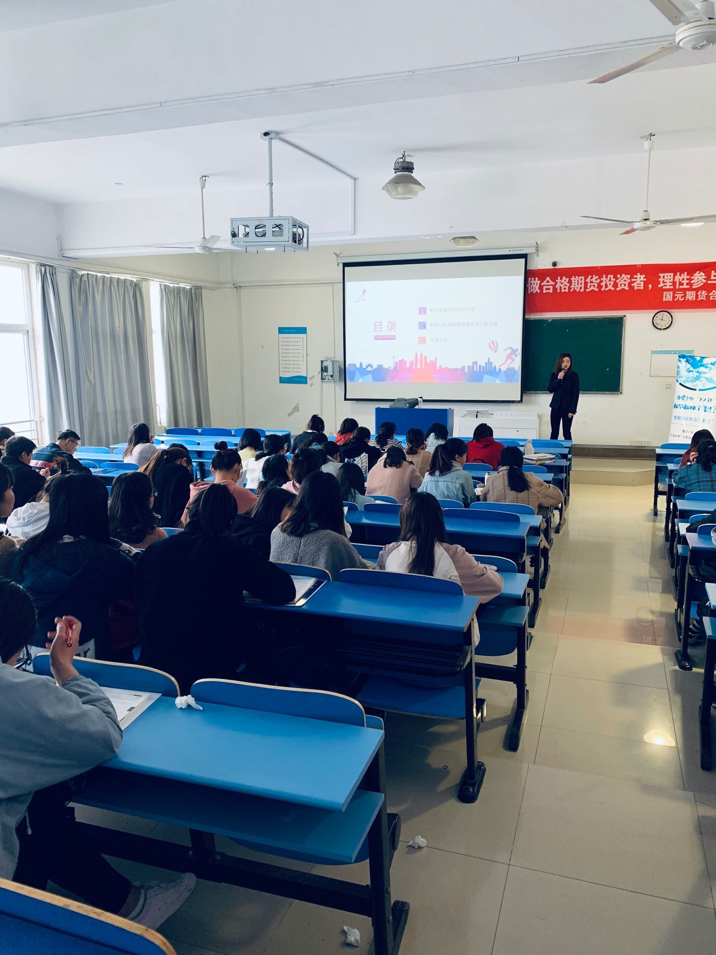 4月11日,由中国金融期货交易所、中国期货业协会主办,国元期货合肥营业部承办的第七届“中金所杯”全国大学生金融知识大赛宣讲会在锦绣校区逸夫楼402举行。正规滚球app平台官网部分专业的学生和老师聆听了此次讲座。