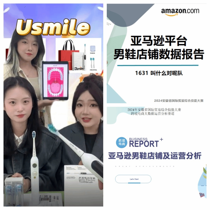 跨境电商网络直播赛道要求采用纯英文进行,从直播产品、编导、主播、运营等直播全流程进行考核。重点考察主播的英语水平、对产品卖点的挖掘、商品特性的展示技巧、直播间前景后景搭建、直播团队的协助能力等。滚球官网“重生之成为女主播队”(指导老师:刘伟 黄菁菁)搭建“Usmile电动牙刷”直播间,在该赛道荣获一等奖。
