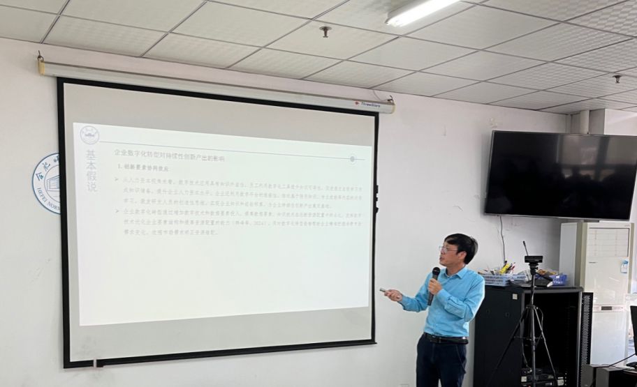 10月9日下午,安徽大学经济学院副院长杨仁发教授应邀来校作题为“数字化转型的持续性创新效应研究”的学术报告。讲座由正规滚球app平台官网副院长钟玉文主持,学院全体老师共同参加了本次讲座。