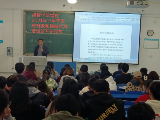2021年10月21日下午,正规滚球app平台官网党校2021年下半年发展对象和预备党员培训班开班仪式在锦绣校区顺利举行。参加本次开班式的学员有41位发展对象和95位预备党员,开班式由学生党支部书记杜姣主持。