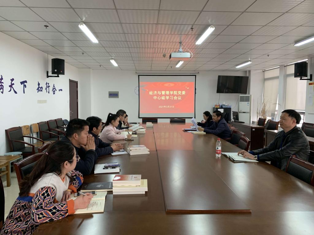 2021年3月31日下午,经济与经济学院党委理论学习中心组召开集中学习会,经管院党委书记沈辉同志主持会议,学院党委中心组成员、组织员、分团委书记等参加会议。