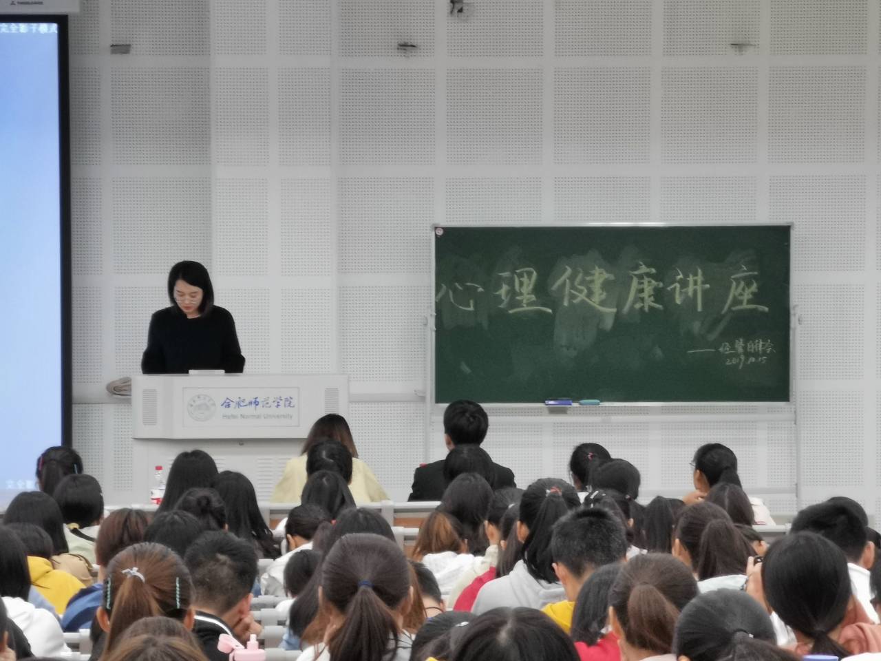 讲座的第二部分,王瑞瑞老师就李晶晶老师的发言做了补充。她提出,大学生处于人生成长的重要阶段,是树立三观,塑造健康心理状态的重要时期,她呼吁同学们要重视自己的心理建设,并以积极的态度面对各种人生的困惑及问题。与此同时,她还提出,在班级中大家要相互帮助,共同成长,而作为班委,更加需要肩负起自己的职责,发挥指导、帮助、了解班级同学心理状态的重要作用。