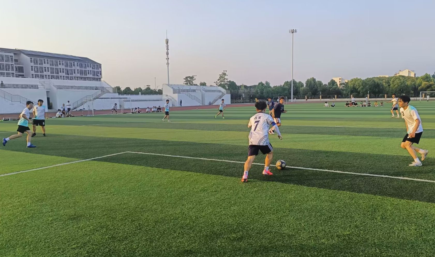 在半决赛中,经管院足球队遭遇了劲敌,经过一番苦战,最终遗憾惜败。队员们并没有因此而气馁,他们迅速调整心态,将全部精力投入到季军争夺战中,在备战中经常一边与强队踢友谊赛一边训练,以此来收获更多的比赛经验。