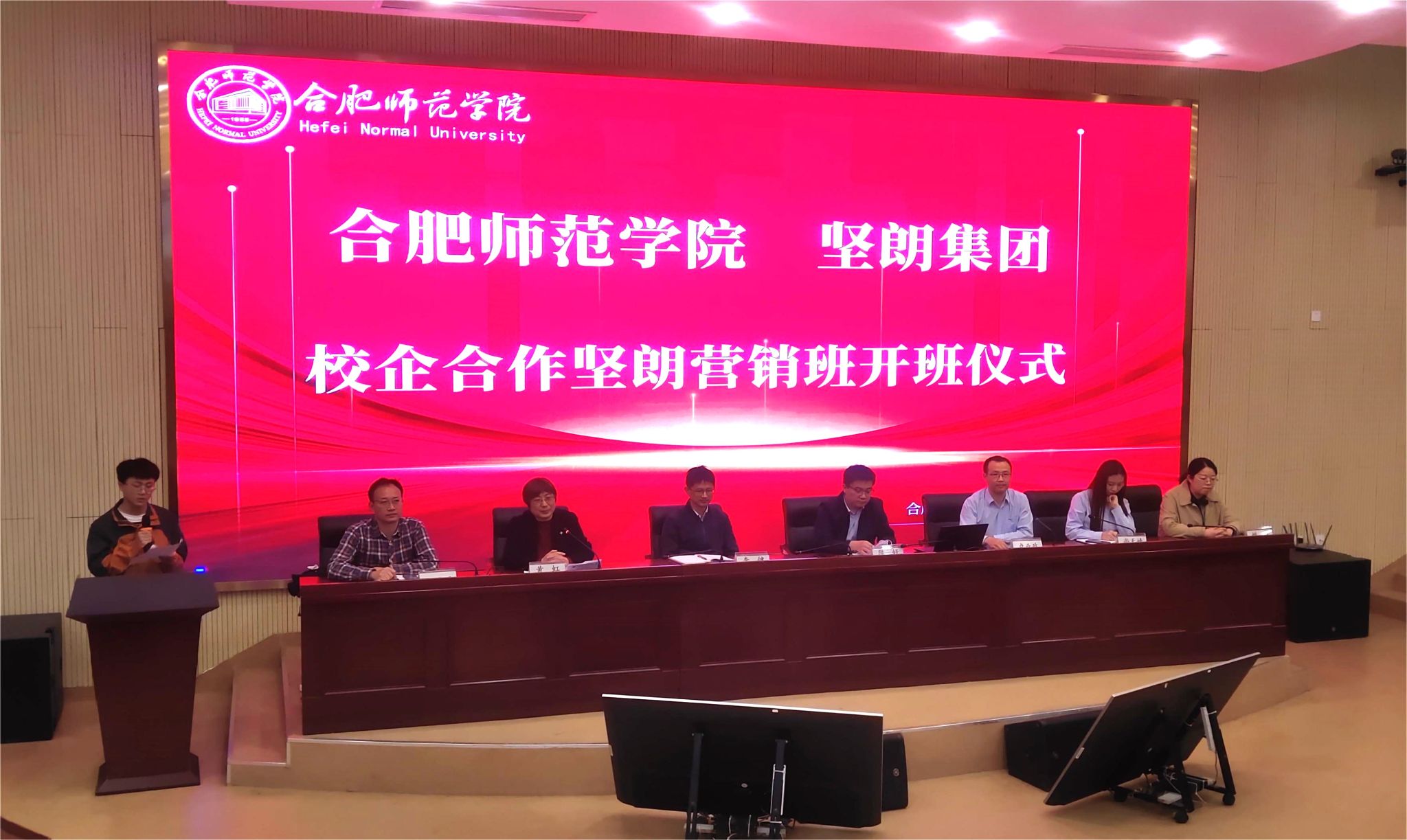 11月7日下午,正规滚球app平台官网与广东坚朗五金制品股份有限公司校企合作坚朗市场营销订单班开班仪式在滨湖校区报告厅顺利举行。广东坚朗五金制品股份有限公司人力资源中心副总监卢业政、培训主管尚天婧、合肥师范学院就业与创业工作处处长李健、正规滚球app平台官网党委书记陈好、教务处副处长王道平、市场营销系主任姚垚、辅导员高劲成,以及2023届全体坚朗市场营销订单班学生参加了开班仪式。仪式由正规滚球app平台官网副院长黄虹主持。