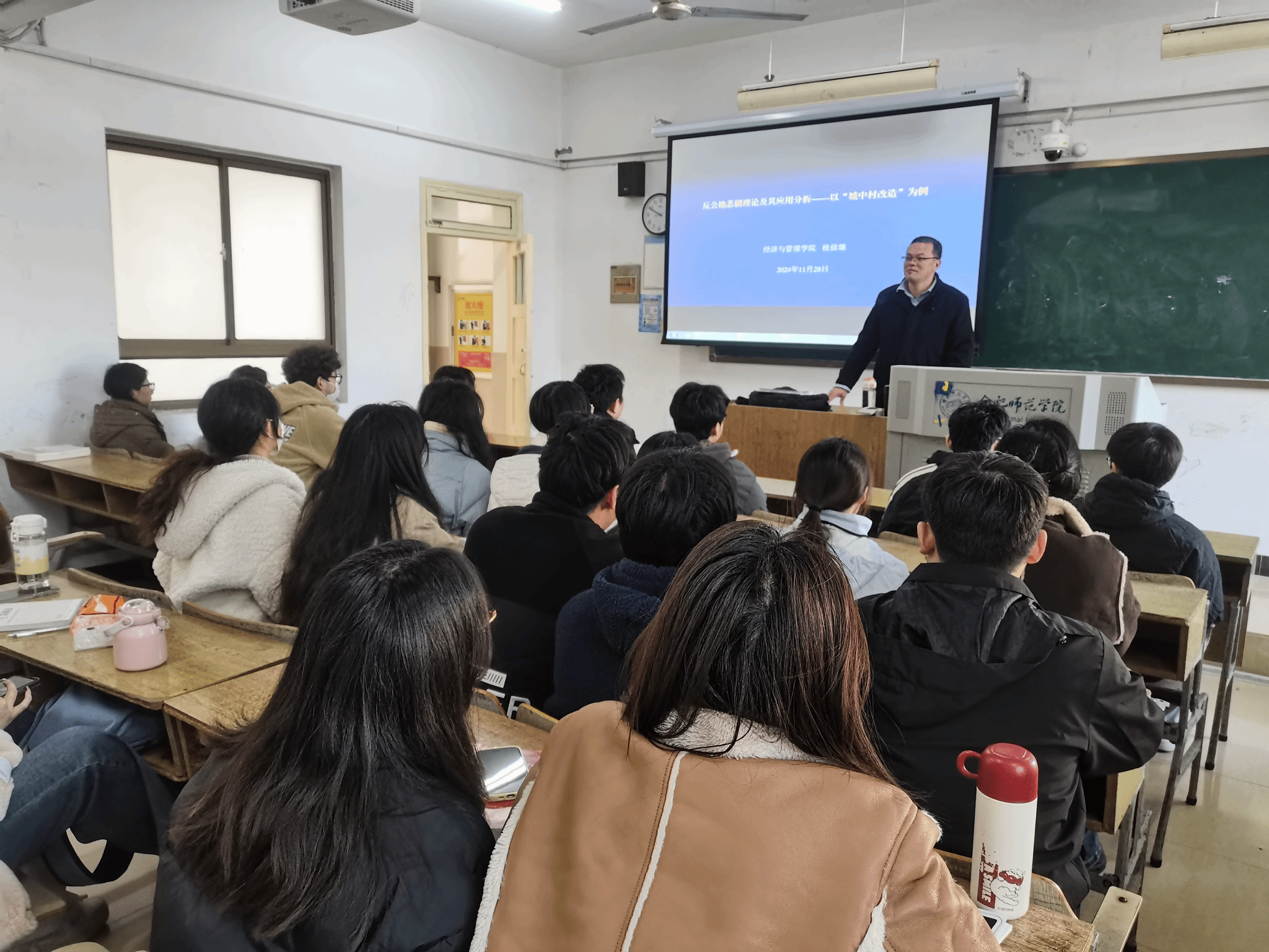 11月28号上午,“行知学堂”系列学术讲座在锦绣校区博约楼307教室举行。本次讲座由正规滚球app平台官网桂徐雄老师主讲,题目是“反公地悲剧理论及其应用分析——以城中村改造为例”,2022级经济学专业的学生聆听了讲座。正规滚球app平台官网党委书记陈好参加了本次活动。