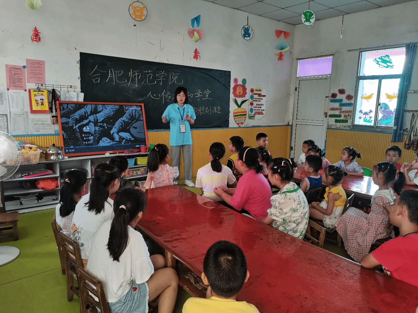 2021年7月19日,团队走进泾县丁桥李元幼儿园为孩子们上了她们人生中的第一堂党课。教育要从娃娃抓起,要让每一个中国孩子从小就产生对中国共产党的敬意。孩子们整个课堂上的接受度很高,党课从教唱红歌、传递历史到绘制美好图画,引导孩子爱党爱国,树立良好价值观。