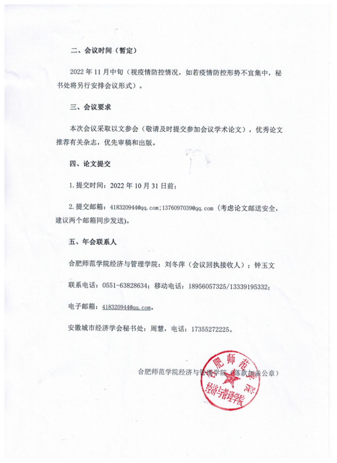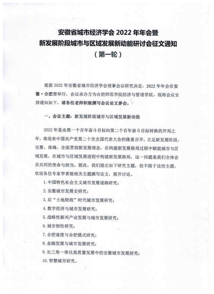 安徽省城市经济学会2022年年会征文通知(第一轮)