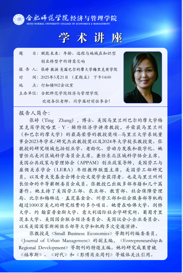 学术讲座:赋能未来:年龄、远程与地域在知识型创业转型中的诗意交响