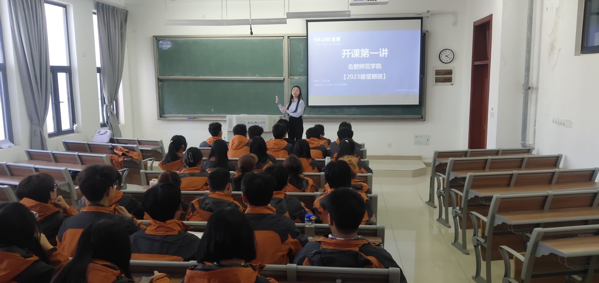随后,坚朗公司卢总监也进行了致辞,他对合肥师范学院给予坚朗公司的支持和信任表示了衷心的感谢,并介绍了坚朗公司的发展理念和战略目标,以及对人才培养的重视:坚朗公司秉持着“有一天,有建筑的地方就有坚朗产品”的愿景,不断创新,不断发展,相信唯有专业才能创造独特价值,长期致力于和高校合作,努力将高校的人才和学科优势与企业的资源优势相结合,未来为同学们提供理想的就业平台。最后,他预祝坚朗市场营销订单班的同学们能顺利完成学业,成为社会栋梁之才。