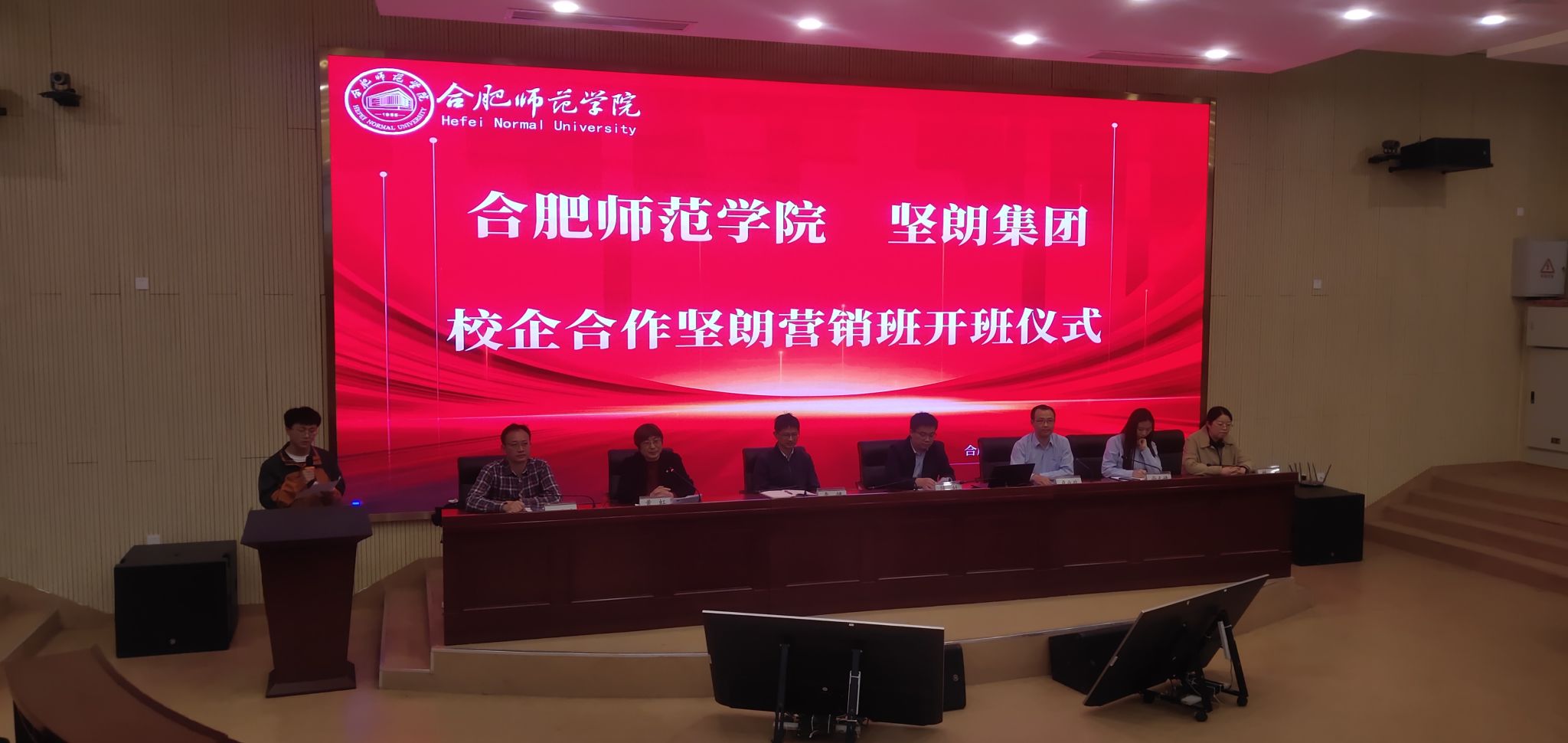 11月7日下午,正规滚球app平台官网与广东坚朗五金制品股份有限公司校企合作坚朗市场营销订单班开班仪式在滨湖校区报告厅顺利举行。广东坚朗五金制品股份有限公司人力资源中心副总监卢业政、培训主管尚天婧、合肥师范学院就业与创业工作处处长李健、正规滚球app平台官网党委书记陈好、教务处副处长王道平、市场营销系主任姚垚、辅导员高劲成,以及2023届全体坚朗市场营销订单班学生参加了开班仪式。仪式由正规滚球app平台官网副院长黄虹主持。