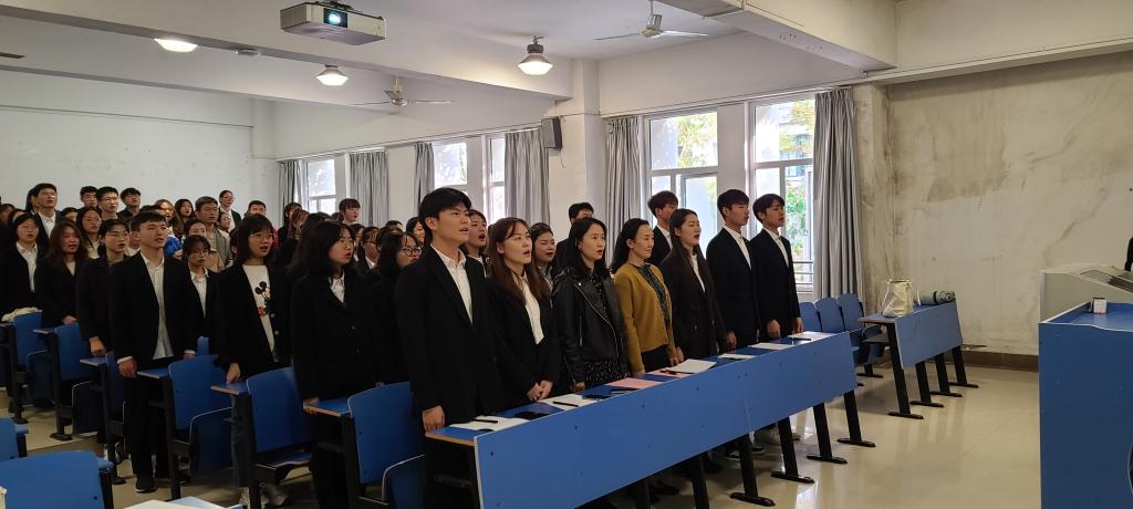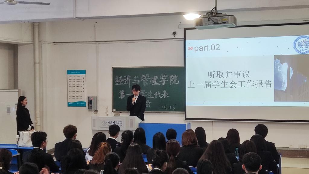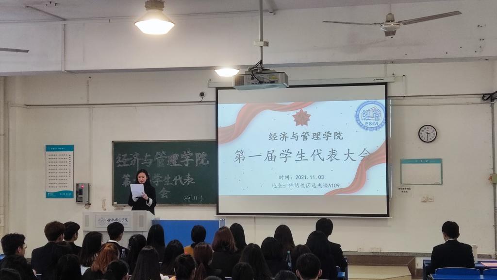 本网讯11月3日,正规滚球app平台官网第一次学生代表大会在锦绣校区逸夫楼109教室组织召开。正规滚球app平台官网党委副书记陶敏老师应邀出席,分团委书记赵燕、学院各年级团干、普通学生共九十名齐聚一堂,共同谋划全院学生自身发展的大事。