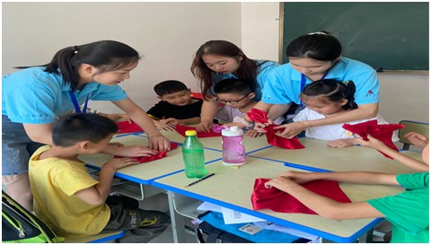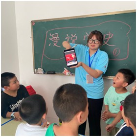 “小先生”席蕊为大家上了一堂中国共产党的党史,课间大家一起陪孩子们玩游戏,教大家用一块口布叠出不同的花样,孩子们眼里充满了好奇。