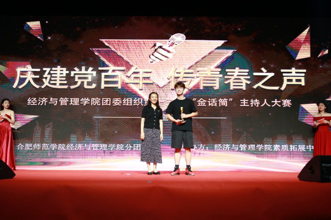 “闪亮新主播”环节中,选手们根据自己擅长的风格,通过新闻播报、节目主持等形式,用深厚的主持功底讲述百年党史,红船故事。为大家带来了精彩纷呈的表演,赢得在场观众的阵阵掌声与喝彩。而在“展示星美丽”环节,选手们用多才多艺的表演呈现社会变迁,用艺术致敬党,歌颂党的伟大功绩,为观众们呈现了一场精彩绝伦的视听盛宴。经过近两个小时的激烈角逐,最终20级经济学专业黄王胤凭借出色的临场应变能力和稳定的发挥荣获金话筒。