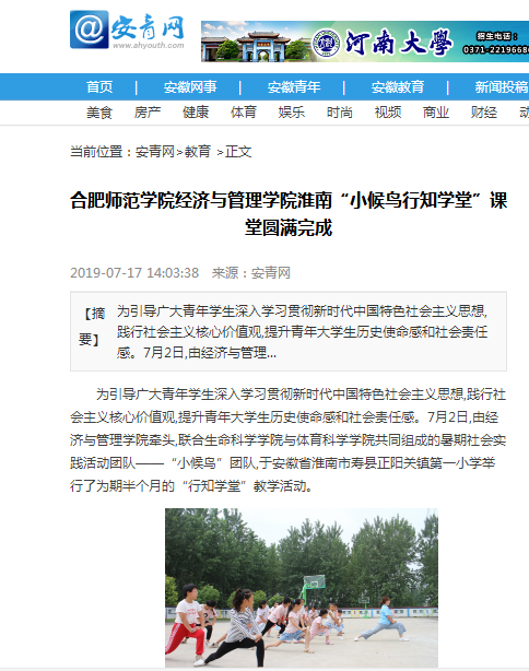 7月17日,安青网报道滚球官网“小候鸟”行知学堂实践活动。(正规滚球app平台官网)