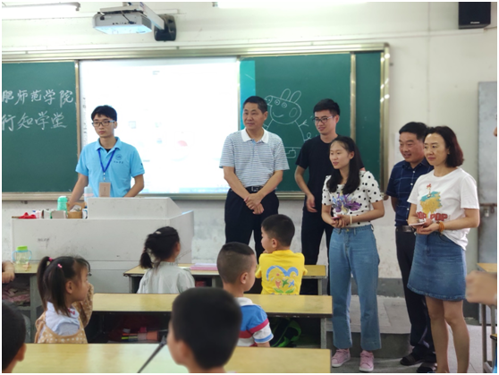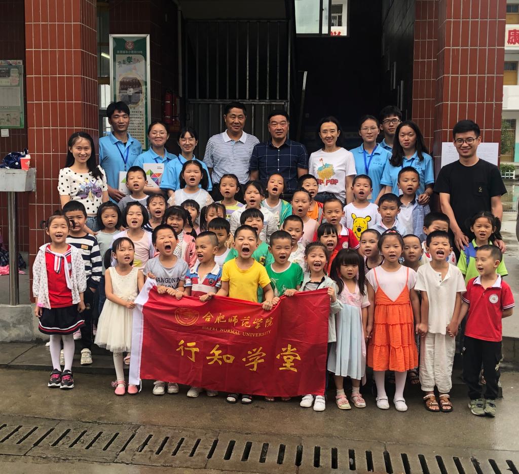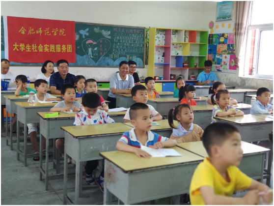 7月12日下午,正规滚球app平台官网党总支书记沈辉、副书记陶敏、分团委书记赵燕和“行知学堂”指导教师谷跃东驱车三个多小时来到岳西县来榜辅导小学看望正在这里开展“行知学堂”的小先生和小学员们。