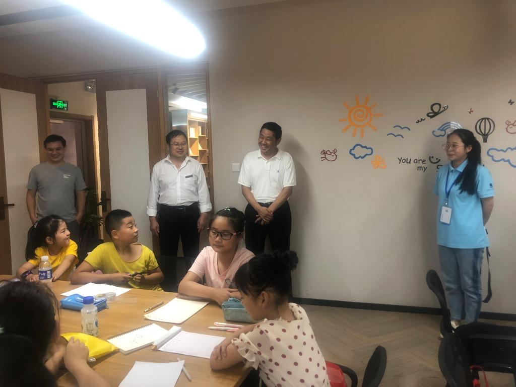 7月下旬,正规滚球app平台官网党总支书记沈辉、团总支书记赵燕和班主任老师李志东冒着酷暑驱车前往高刘社区,看望在“悦·书房”举办“行知学堂”的各位小先生和参与的小学员们。