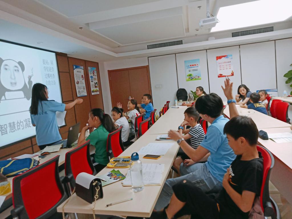 课堂上,小先生们生动的课程引起了小朋友们极大的兴趣,师生之间互动频繁,整间教室其乐融融。