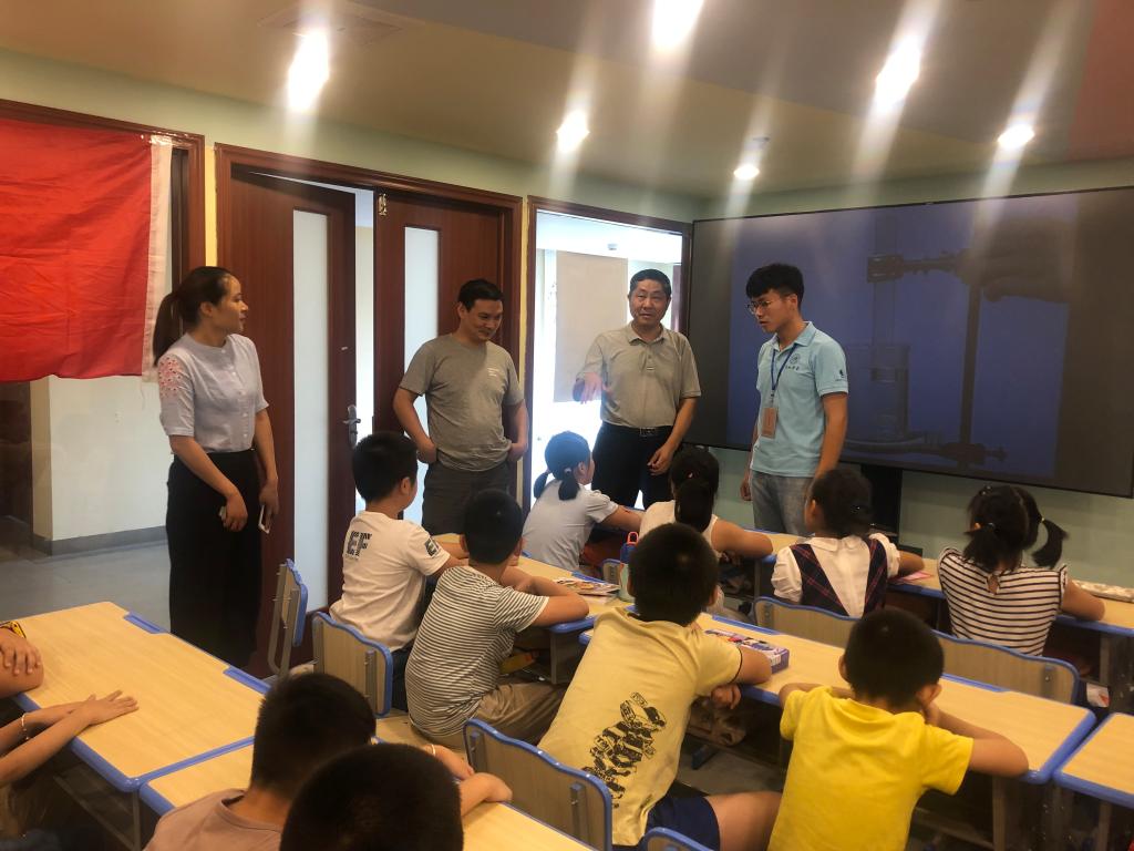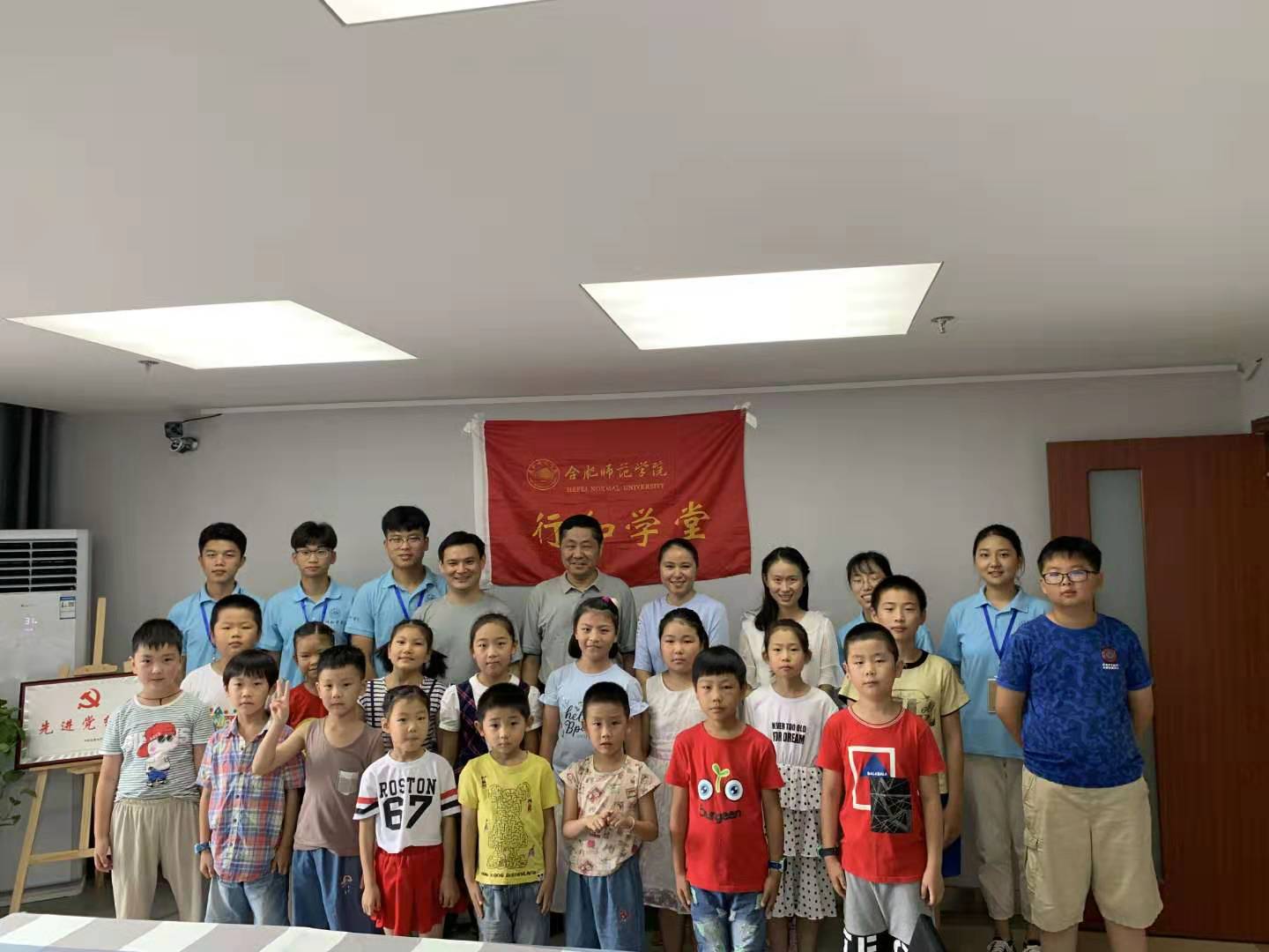 7月底,正规滚球app平台官网党总支书记沈辉、团总支书记赵燕和“行知学堂”指导教师李志东驱车前往合肥鲁园社区,看望在这里举办“行知学堂”的各位小先生和参与的小学员们。