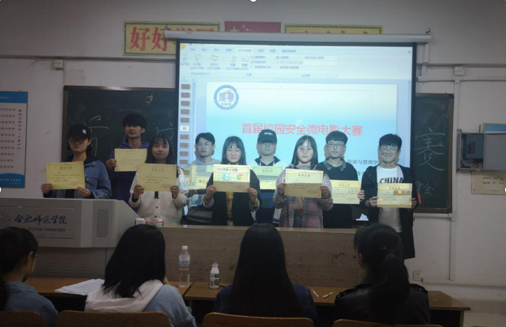 本次大赛荣获一等奖的是18经济学的《电锅风云》,二等奖的是18经济与金融的《太平洋深处的蓝鲸》与18市营的《校园安全之校园贷》,三等奖的是18国贸的《预防校园贷》、18酒管的《你在凝视深渊的时候,深渊也在凝视着你》与18预科的《贷贷疯狂》,优秀奖的是18酒管的《破晓》、18中美财管的《借钱》与18中美财管的《校园财产安全》。