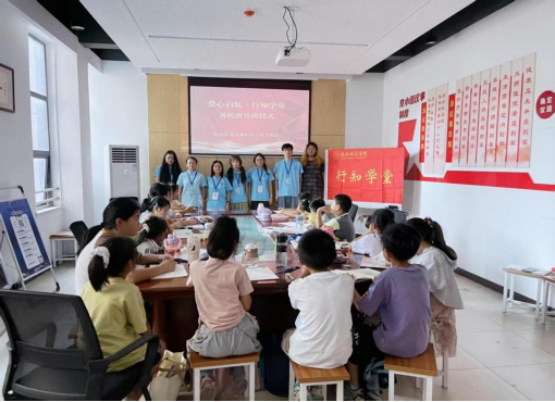 7月8日,正规滚球app平台官网高刘行知学堂开班仪式在长岗社区新桥家园顺利举行。20余名活泼可爱的小学员与7名大学生“小先生”齐聚一堂,共同开启暑期学习之旅。